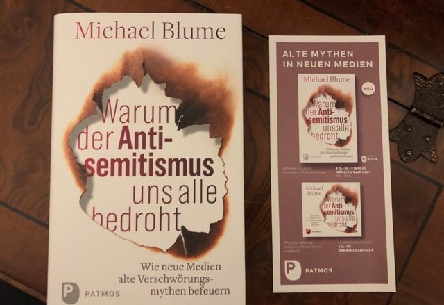 Ab Montag, 18.03.2019, im Handel: Blume, Michael (2019): “Warum der Antisemitismus uns alle bedroht. Wie neue Medien alte Verschwörungsmythen befeuern”, Patmos-Verlag